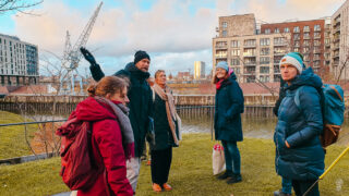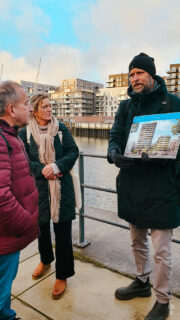 Anschließend zogen wir weiter in das Kesselhaus HafenCity, um uns am Stadtmodell einen Überblick über die Weiterentwicklung der HafenCity zu verschaffen. Von dort aus brachen wir zu einer Führung durch die HafenCity-Quartiere Elbbrücken und Baakenhafen auf. Besonders interessant waren die stadtentwicklerischen Ansätze, die versuchen, Nachhaltigkeit, soziale Durchmischung, urbanes Arbeiten, Nahversorgung sowie Kunst und Kultur miteinander zu vereinen.